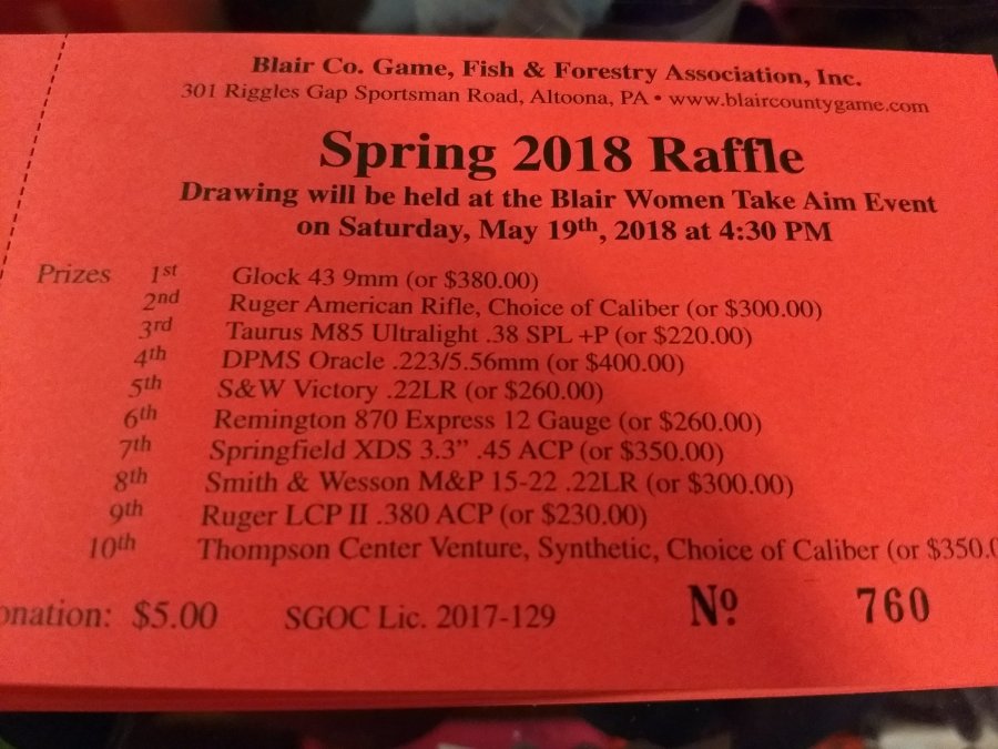 UncategorizedSpring Raffle, Last chance to buy Tickets! May 19th will be the drawing this year. Come to the lodge and get your tickets now until the 19th. We are open everyday. Great guns and a cash option for each prize. Share this: Click to share on X (Opens in new window) X Click to share on Facebook (Opens in new window) Facebook Like Loading...