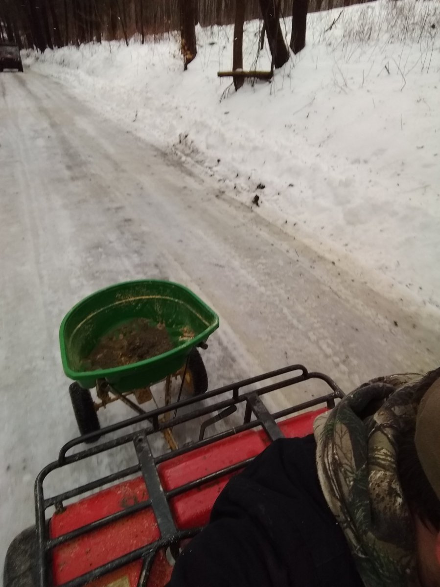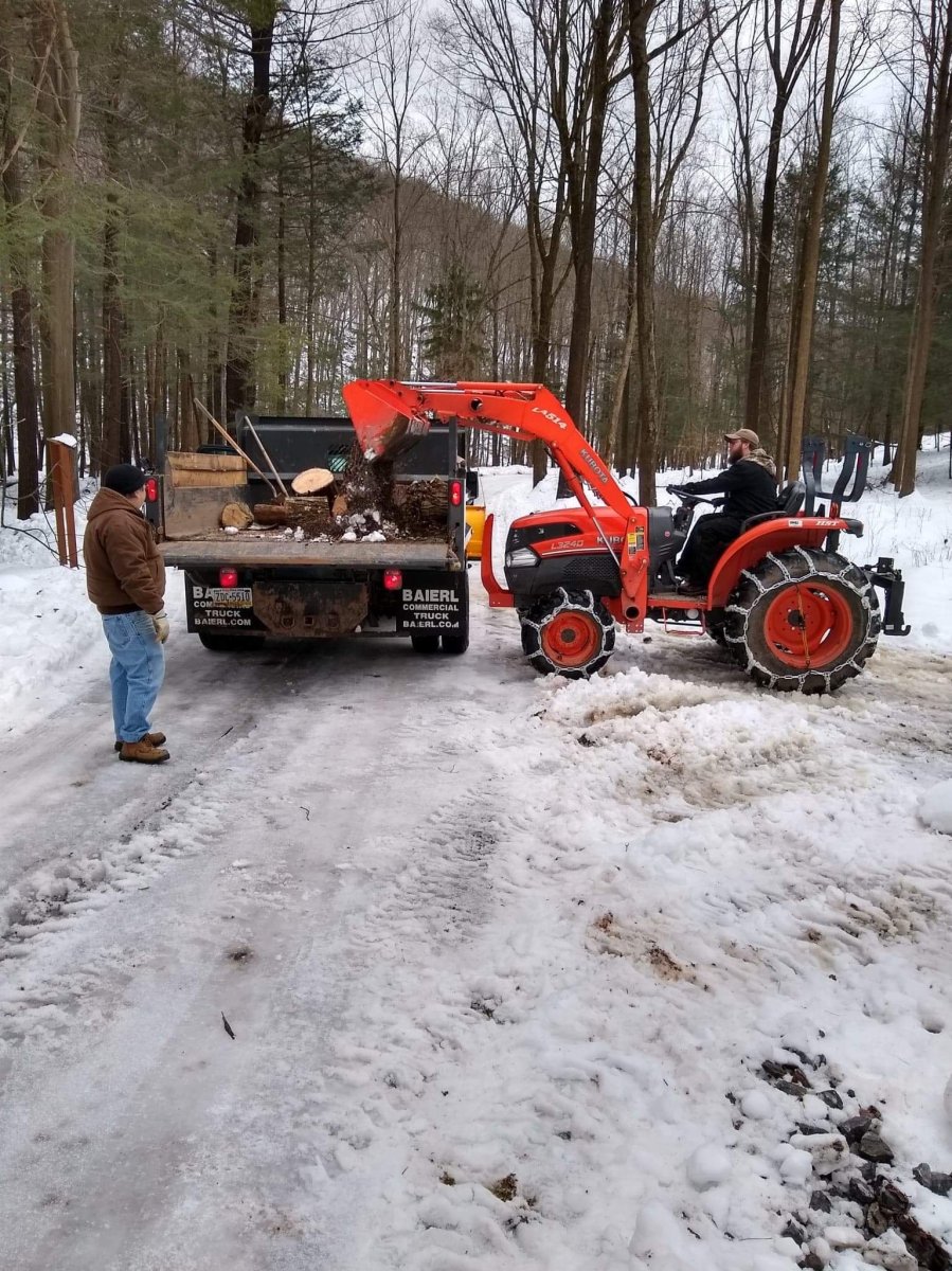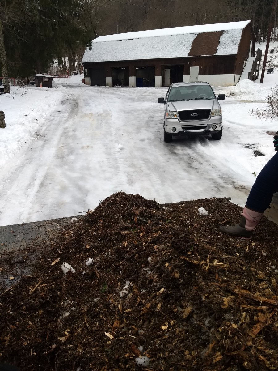 With the large amount of snow mixed with freezing rain we have a road the is covered in ice and icicles hanging from the lodge. Closing the club was the only thing we could do to make sure everyone stayed safe and we take that time to try and deal with the mess without the fear of someone coming up the driveway. To help with traction, we threw mulch on the parking lot by hand.