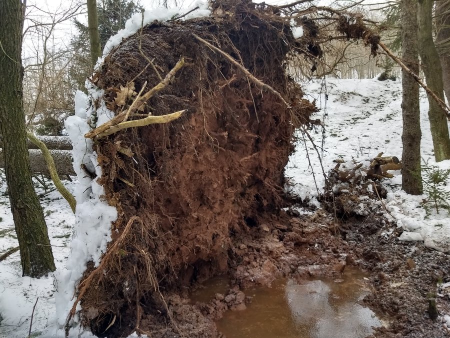 As we were putting mulch on the road a tree uprooted near the trap house. Future work project…