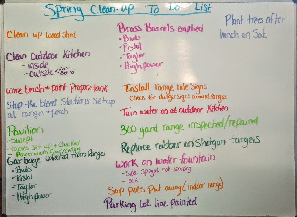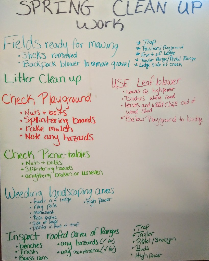 This weekend spring cleanup is important to get members together to get the facility in tip top shape for the rest of the year.
