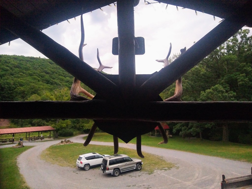 A year of discussion and planning and we have finally replaced the elk antlers on the front of the lodge. We will leave you in suspense for the view from in front.