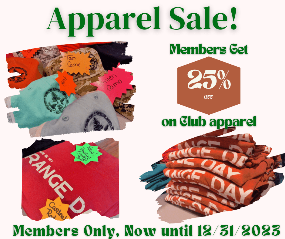 Our first ever Members Discount on our Apparel. From now until Dec. 31st. All members get 25% Shirts, Hats, Hoodies, and bags. Check your email for the coupon code for online ordering or stop in at the lodge.